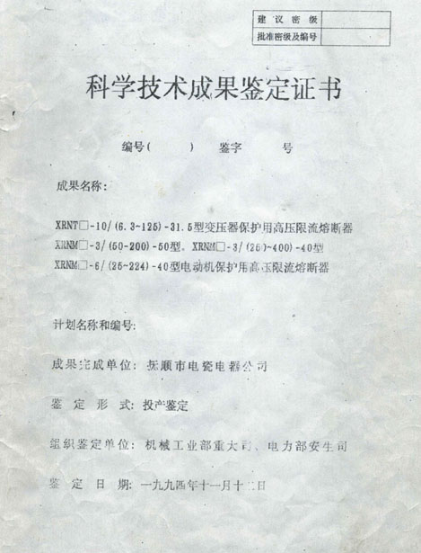 撫順電瓷廠電瓷電器公司是原機(jī)械工業(yè)部定點(diǎn)生產(chǎn)高壓隔離開關(guān)、高壓熔斷器、絕緣子、避雷器的骨干企業(yè)之一。生產(chǎn)歷史悠久,技術(shù)力量雄厚,產(chǎn)品質(zhì)量可靠,產(chǎn)品遍及全國,遠(yuǎn)銷國處。具備高壓隔離開關(guān)、高壓熔斷器的設(shè)計(jì)、開發(fā)及批量生產(chǎn)的能力。擁有英國BRUSH公司具有國際先進(jìn)水平的高壓熔斷器制造技術(shù)和生產(chǎn)線關(guān)鍵設(shè)備,完備的檢測(cè)儀器。能夠批量生產(chǎn)符合國家和國際標(biāo)準(zhǔn)的3.6kv-40.5kv各種規(guī)格的戶內(nèi)外高壓隔離開關(guān)、高壓限流熔斷器系列產(chǎn)品。產(chǎn)品在國家高壓電器質(zhì)量監(jiān)督檢測(cè)中心通過全部型式并取得了兩部鑒定和型號(hào)證書,是國家經(jīng)貿(mào)委城農(nóng)網(wǎng)改造的推薦產(chǎn)品,通過了ISO9002國際質(zhì)量體系認(rèn)證,曾榮獲機(jī)械部科技進(jìn)步二等獎(jiǎng)和地方優(yōu)秀新產(chǎn)品獎(jiǎng)。